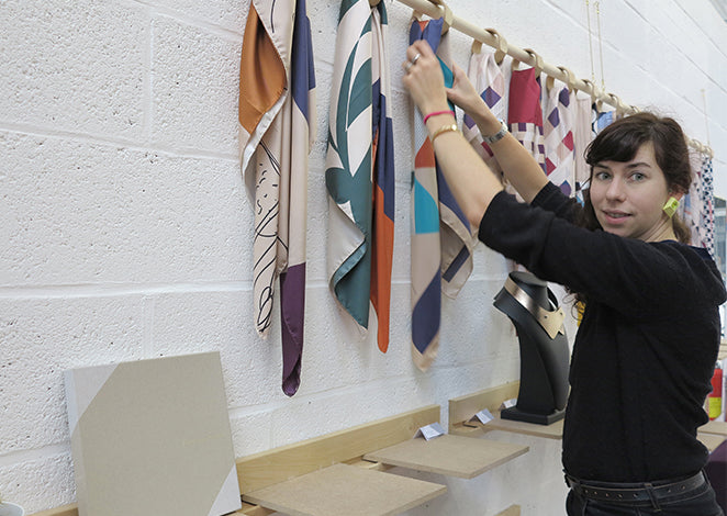 Louise, fashion designer and creator of the “Col Claude”, a unisex accessory that offers an alternative to bow ties, neckties and ascot ties.