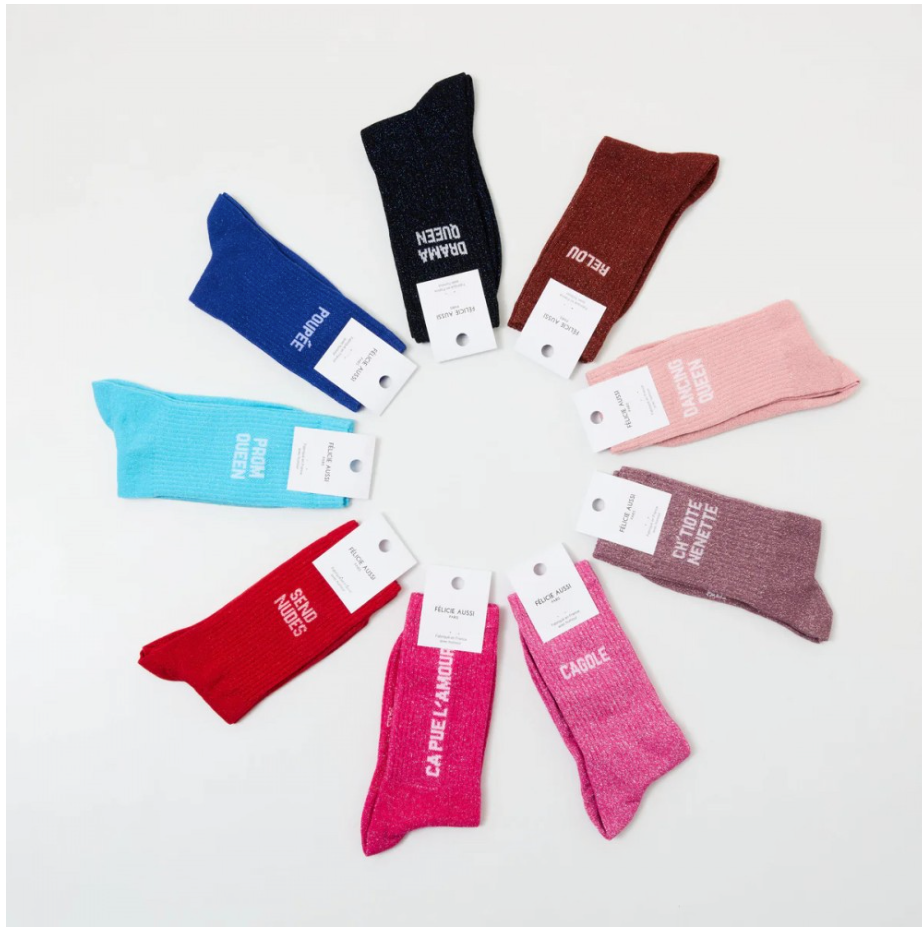 The Connasse socks from Félicie Aussi are ideal to make the person to whom you offer them laugh or to add color and schoolboy humor to your outfits.