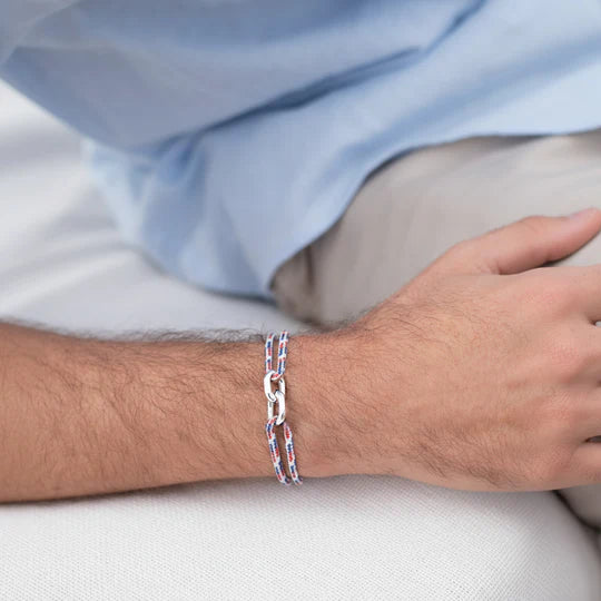 double maillon argent 22 mm bleu blanc rouge